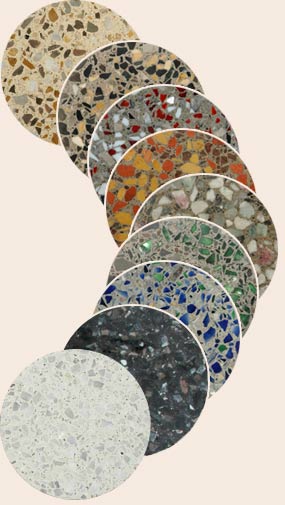 Terr-Con is a new, patented flooring system that combines the strength of concrete with the beauty of terrazzo. The result is an attractive yet affordable flooring solution for high-traffic spaces like stores, schools, restaurants, even the indoors and outdoors of homes. With its new white concrete formula, Terr-Con offers an even wider range of color possibilities to suit any location.